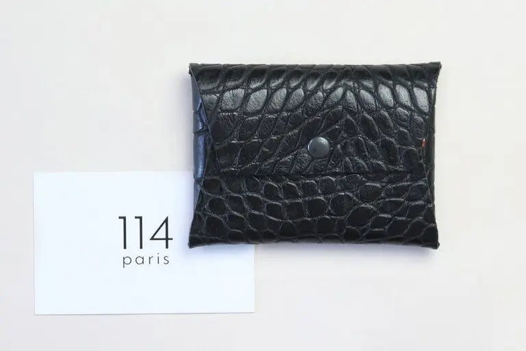 Les articles de petite maroquinerie 114 Paris sont fabriqués de manière artisanale à Paris à partir de cuirs d'exception, principalement français et italiens.