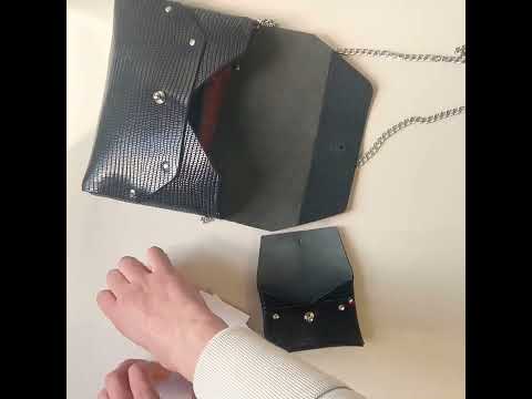 Un mini sac croco noir sans couture élégant, fabriqué à la main en France